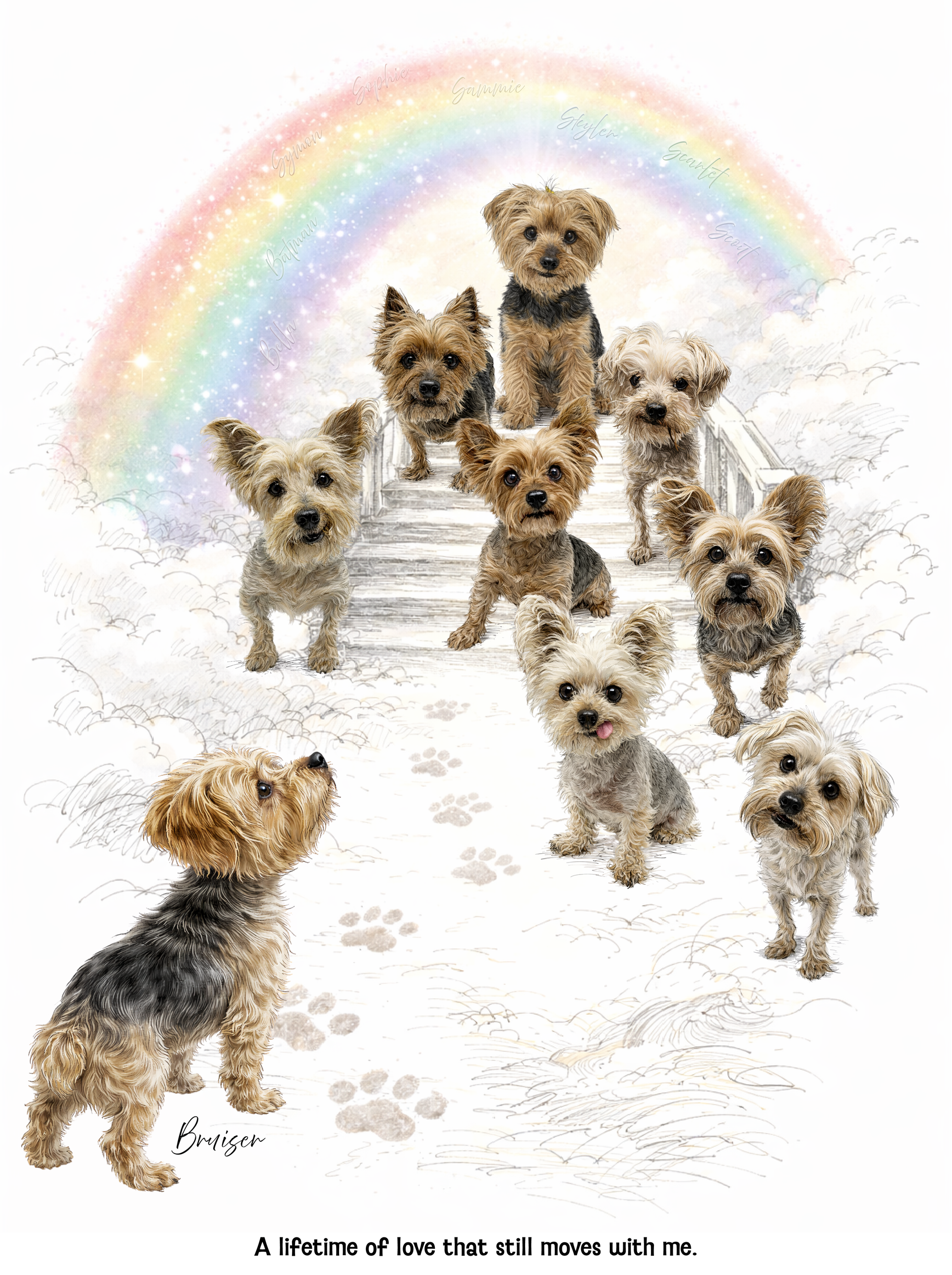These Yorkies filled our home with laughter, love, and unforgettable personalities. They are the heart behind the Rainbow Paw Squad and the inspiration behind everything we do.