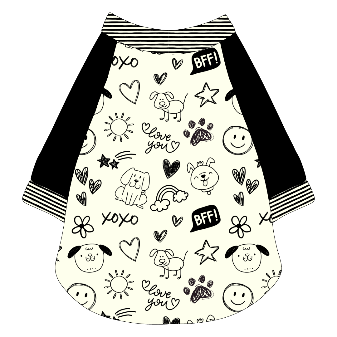 The Raglan Jersey may be a recognizable style, but Mon Ami adds an extra touch of spunk for your one-of-a-kind furry!  Raglan style sleeves start at the neck, as opposed to tee style sleeves which start at the shoulder seam.  Stretchy fabrics help pups get in and out of this style with no complication.  Furiends, you'll love how comfy and relaxed you feel in this fun style.  The trim used on the neck and sleeves is also found on the waistband.