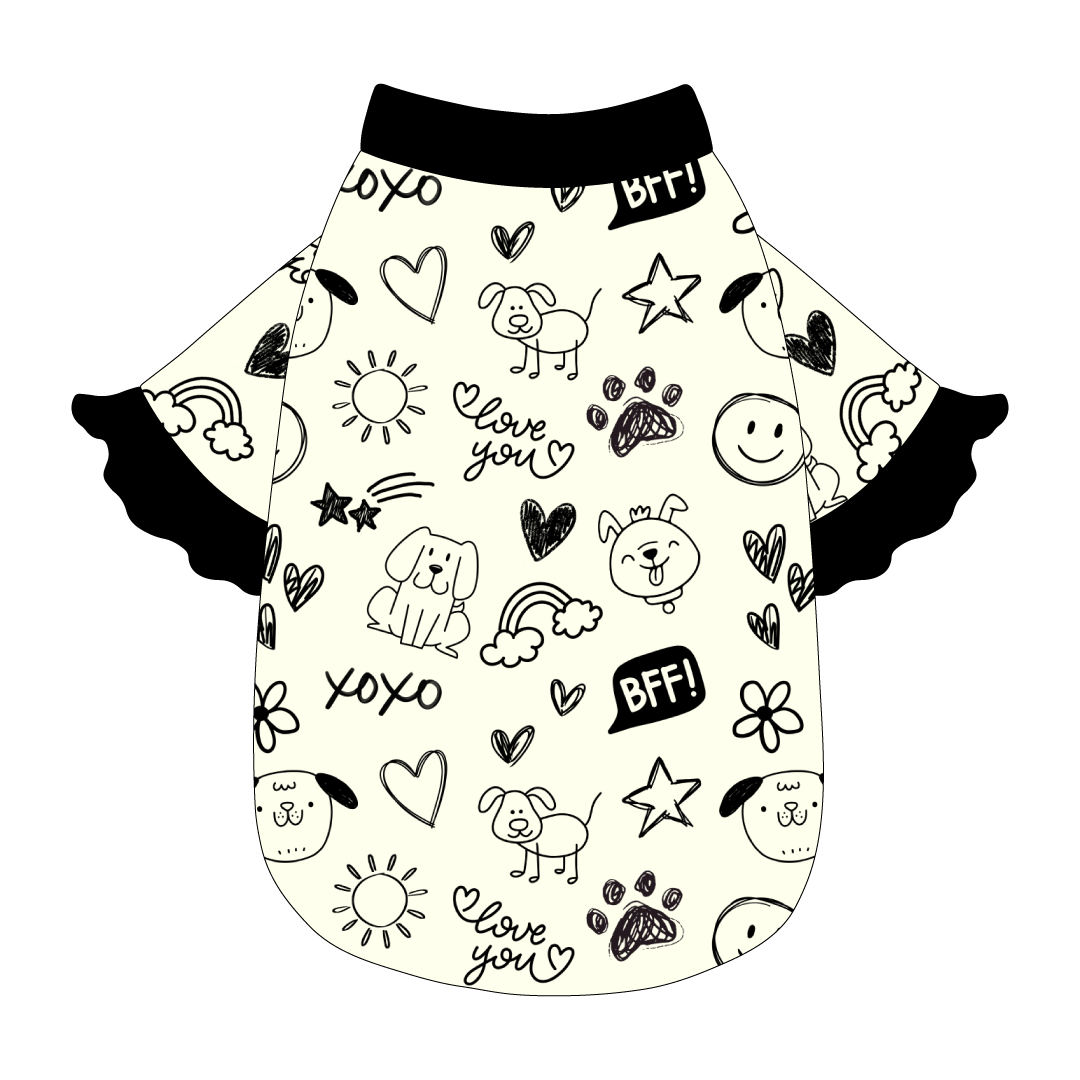 The Shimmy Edge Tee adds shimmy ruffles to the edge of each sleeve, keeping this style anything but basic.  This is a sweet style for pups that want a little flair but don't want to give up the ease and comfort of a tee.  With plenty of stretch, no need to stress over getting ready.  The trim used on the neck and sleeves is also found on the waistband.