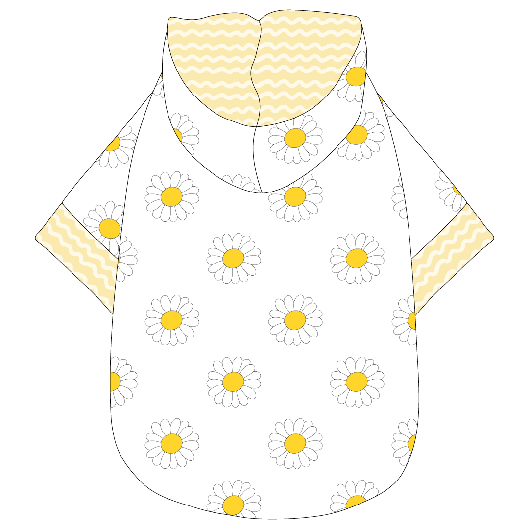 The Hoodie option offers all of the ease of a basic tee with the added look of a fun hood.  The hood is fully lined and completely functional, but also looks on trend resting gently on the upper back.  While your pup will appreciate the comfort of this design, his or her human will love the cuteness overload.  The Hoodie does offer lots of stretch, so you'll never stress at dressing time.  The trim used on the neck and sleeves is also found on the waistband.
