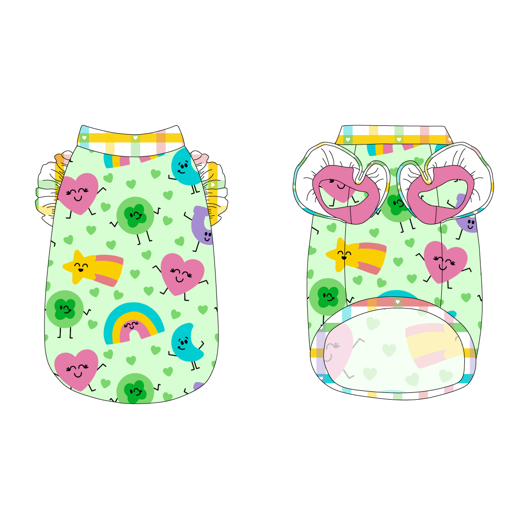La Petite Shimmy Tank starts with a basic tank and turns it into a style that's flirty and fun!  And did we mention comfy?  Shimmy ruffles on top of your shoulders with coordinating basic trim peeking out underneath make this a fun staple for any fashionista's closet.  Pups, enjoy walking the fine line between fashion and function - no leash required!  This outfit offers a lot of stretch, so you'll be back to zoomies in no time flat!  Trim is also found on the waistband.