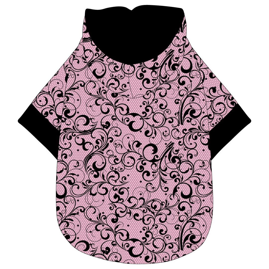 The Hoodie option offers all of the ease of a basic tee with the added look of a fun hood.  The hood is fully lined and completely functional, but also looks on trend resting gently on the upper back.  While your pup will appreciate the comfort of this design, his or her human will love the cuteness overload.  The Hoodie does offer lots of stretch, so you'll never stress at dressing time.  The trim used on the neck and sleeves is also found on the waistband.