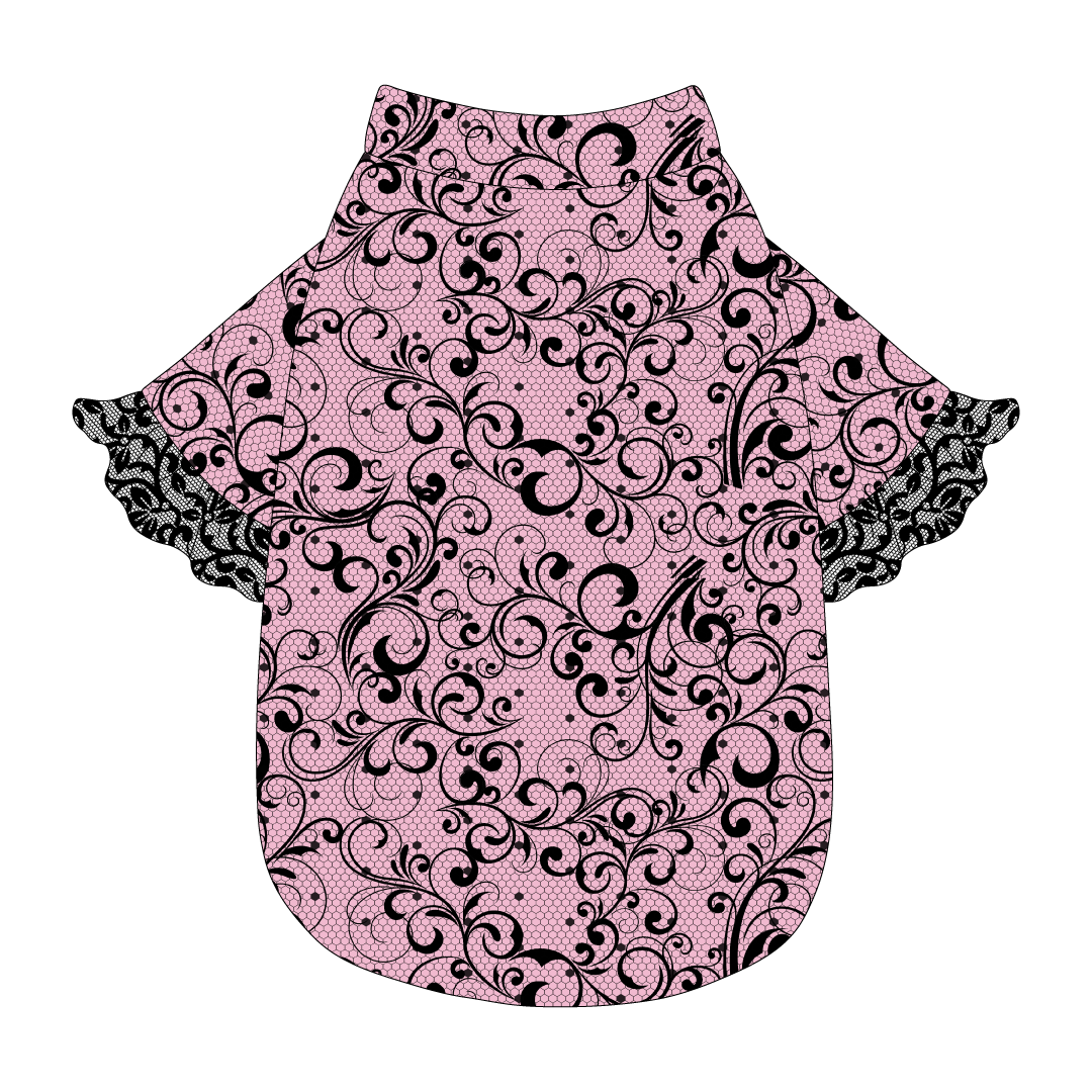 The Shimmy Edge Tee adds shimmy ruffles to the edge of each sleeve, keeping this style anything but basic.  This is a sweet style for pups that want a little flair but don't want to give up the ease and comfort of a tee.  With plenty of stretch, no need to stress over getting ready.  The trim used on the neck and sleeves is also found on the waistband.