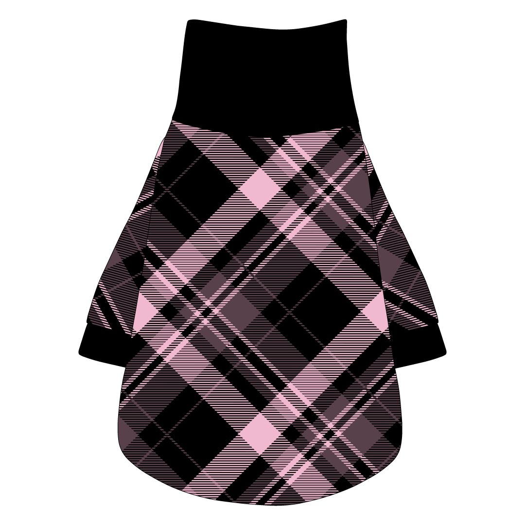 The Turtleneck Tee takes a basic style and amps it up with much wider neck band, resulting in a higher neck line.  This is a great style for breeds that have a longer neck naturally, or for those pups who like a classic design.  Plenty of stretch offers comfort and relaxation.  It also helps pups get dressed with ease.  The trim used on the neck and sleeves is also found on the waistband.